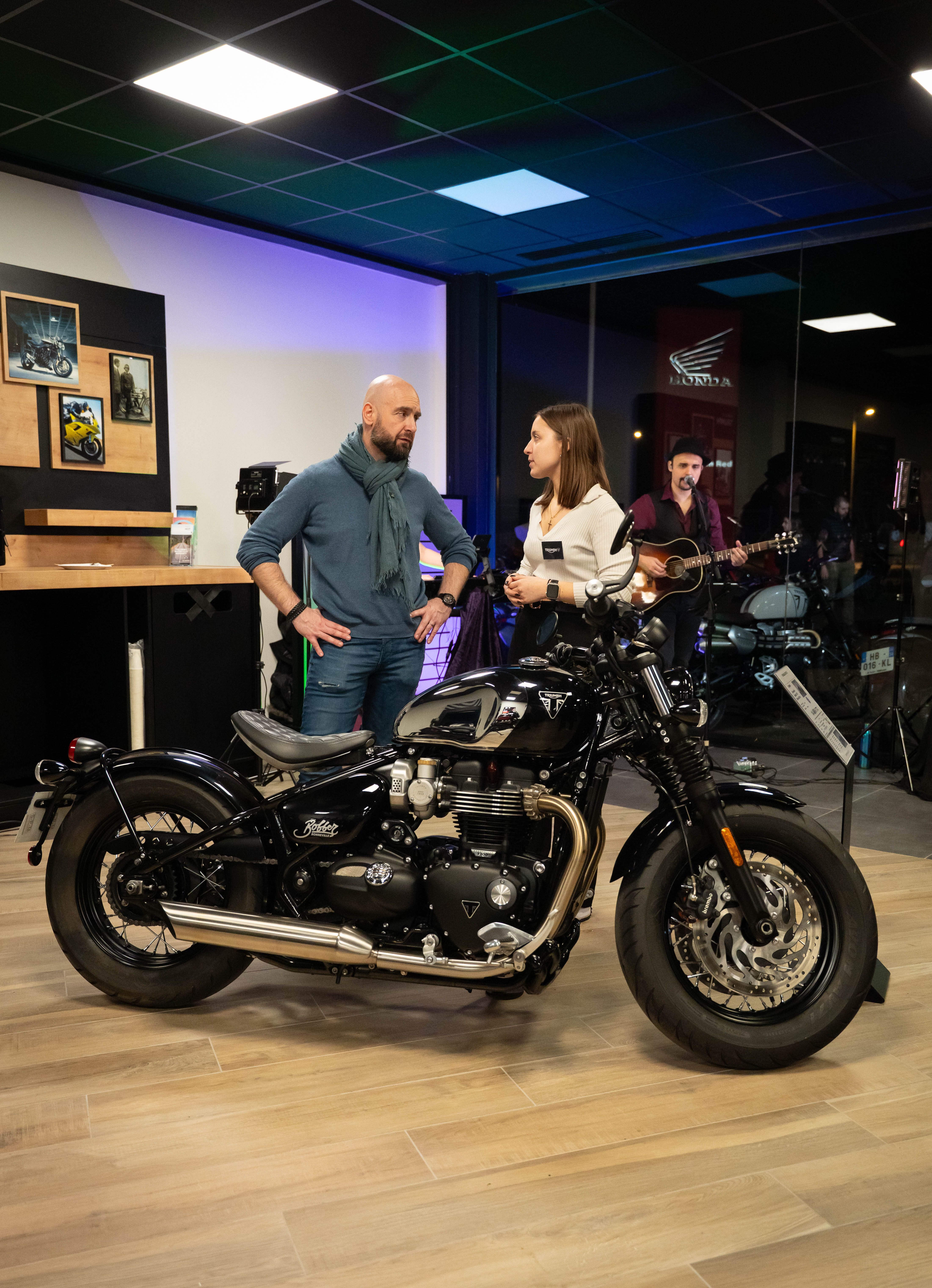 Pour marquer cette soirée d’inauguration, nos invités ont assisté à la révélation de la Nouvelle Triumph Tiger Sport 800, un modèle qui incarne performance et innovation. L'événement a été rythmé par une animation musicale en live, un bar à cocktails aux couleurs de Triumph et des échanges conviviaux autour des modèles exposés, offrant à chacun l’opportunité de partager sa passion et ses impressions.